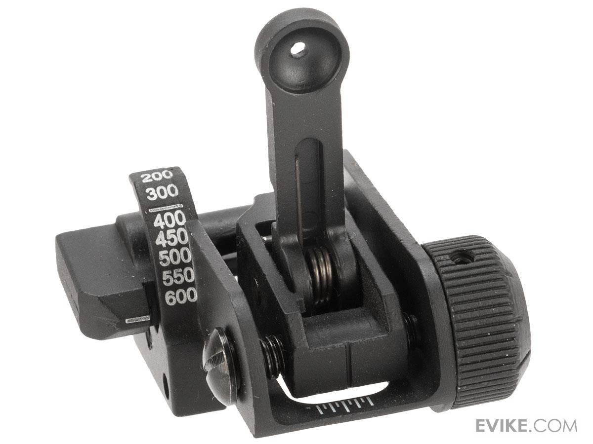 "Maybe I got a lemon, but my sight doesn't actually flip up. It's stuck in place and I'm not sure why. Thankfully I bought it for aesthetic purposes on a GWOT rifle so it'll be sitting under an ACOG. Beside who actually aims in airsoft anyway?