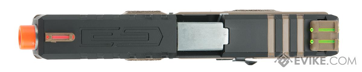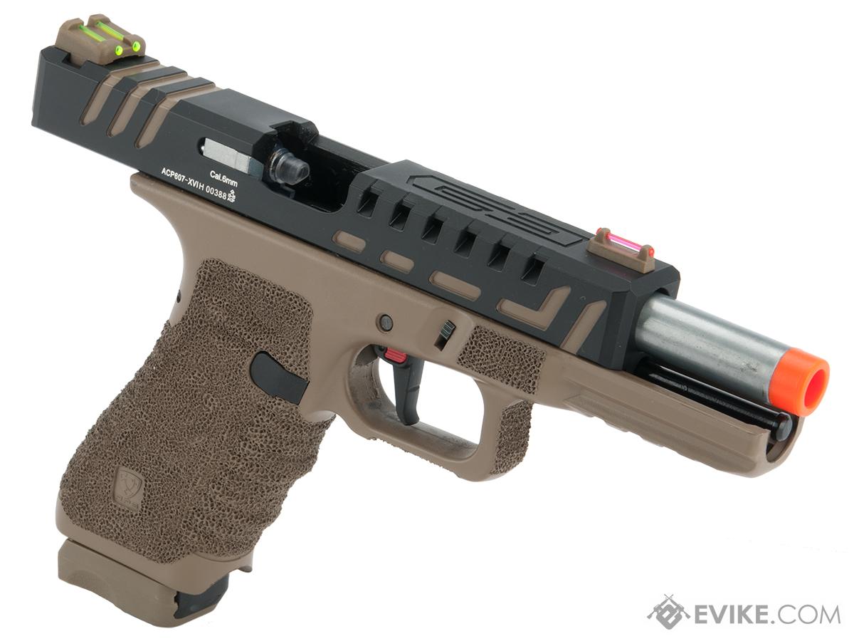 The newly designed APS XTP (eXtreme Training Pistol) series incorporates improvements based on user feedback and requests over the years by players and techs worldwide. The new XTP system boasts improved gas efficiency along with enhanced performance. High stress and high wear parts are now made of steel or aluminum to greatly improved durability and reliability. The new frame is made from high impact polymer formulated to meet Military specifications. One of the top requests was to have the consistency of CO2 but have the FPS tuned to fall within 350 FPS to meet CQB engagement limits. The pistol is also compatible with green gas magazines should a lower fps between 300-320 be required.