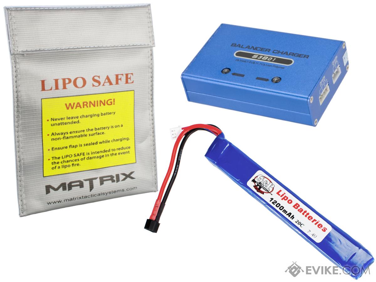 Package Includes: AEG, Magazine, Manual, 7.4v LiPo Battery, LiPo Smart Charger, LiPo Safe Bag