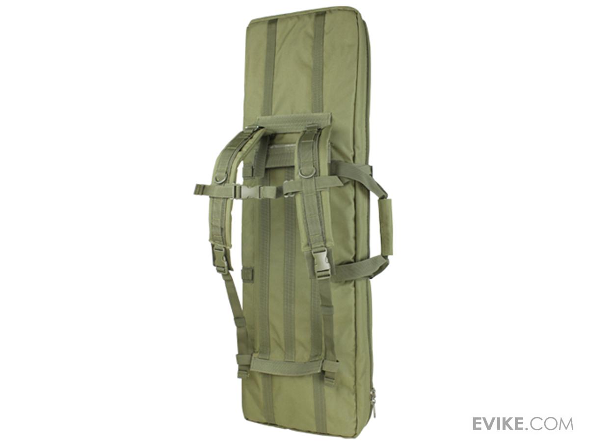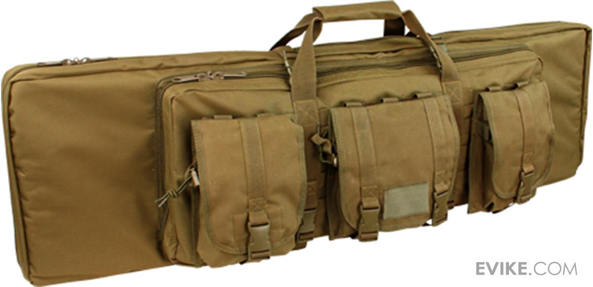 The Condor double rifle cases are designed to carry two primary weapons, with the addition 26" compartment for a pistol, optic, SMG or other accessories. It comes with 3 modular pouches that combines to hold up to 14 M4 magazines. The padded divider separates the two rifles and the entire case is fully padded for maximum protection.