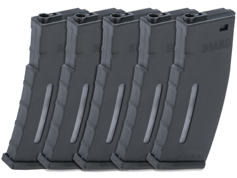 The 30 round "realistic capacity" magazines are made available for the training and Milsim type gaming looking for true realism. The 190 round capacity version of this magazine is also available. The Evike.com BAMF magazine features a robust construction, performance, light weight, a slick and simple overall appearance, and ninja quiet stealth operation.