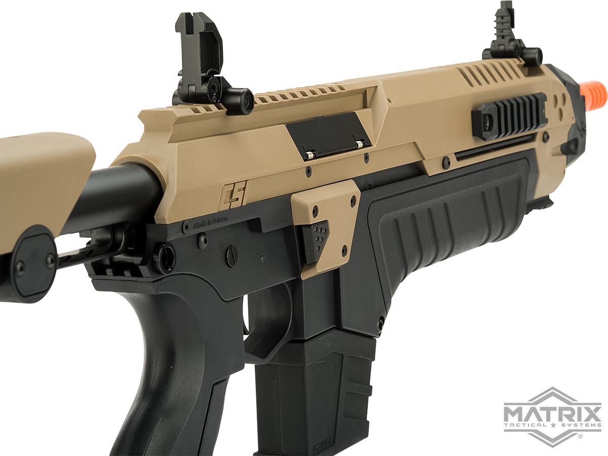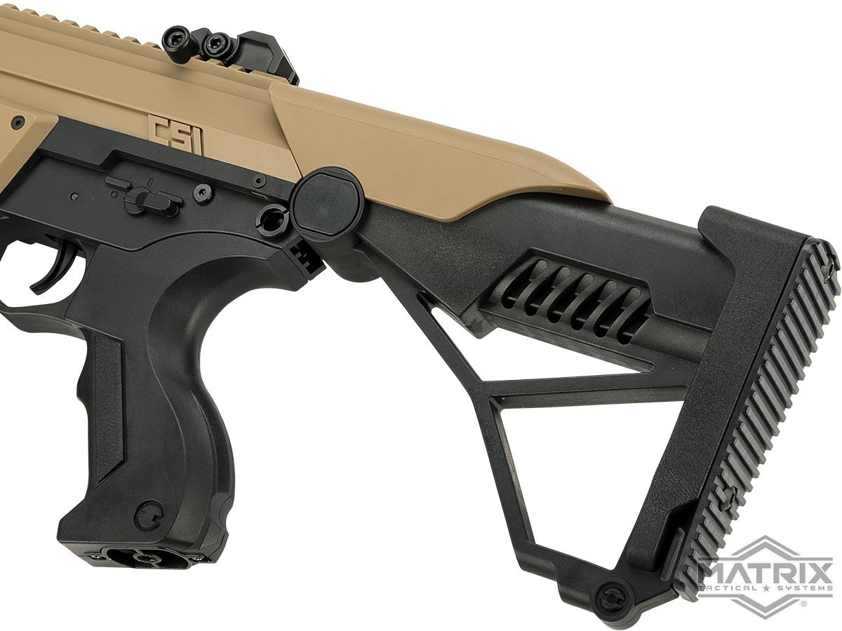 Everyone has an M4 or an M4 variant. Airsofting has become a sea of AR style rifles, an ocean of railed handguards, AR receivers and a slim selection of stocks. Break free from the sea of grey, boring rifles. Move into the 21st century and pick up a CSI XR-5 Advanced Main Battle Rifle. The XR-5 is unlike any other rifle currently on the market today. Built around the traditionally durable version 2 gearbox, the XR-5s relation to the M4 ends there. The XR-5 features a futuristic injection molded polymer body, molded with the ergonomics of the user in mind. The fire controls are similar to the favored M4 rifle ensuring that there is little learning curve when transition from your old battle rifle to the XR-5 Advanced Main Battle Rifle. To top it off the XR-5 features top, bottom and side accessory rails for mounting all 20mm accessories such as vetrical grips, weapon lights or grenade launchers.