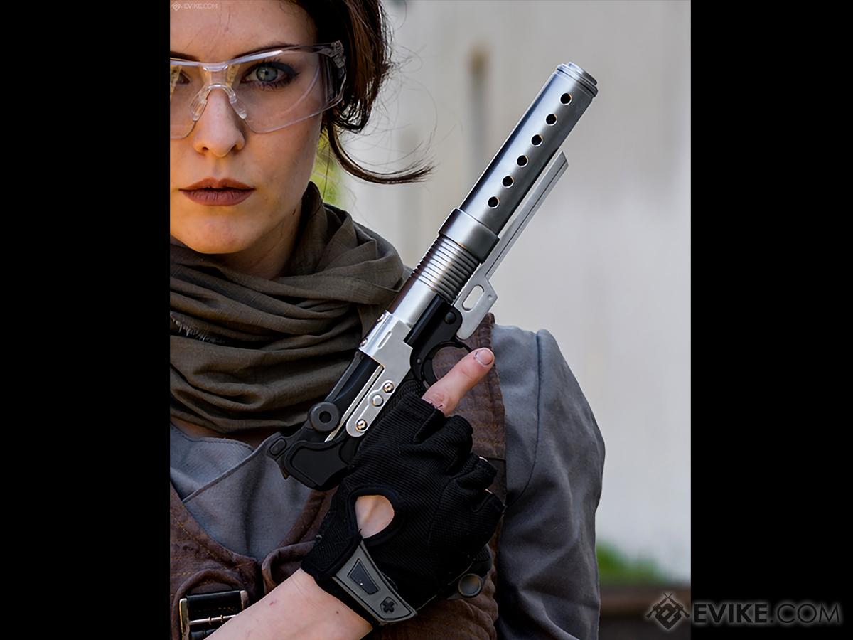 The K00002 - Bull Barrel Extension is constructed under precise machining and processed through different stages of fabrication in order to fine-tune the tolerances. With the unique design of the barrel extension and the high polished chrome finish, it gives the K00003 - Pistol a whole new futuristic look and yet it provides extra weight on the front end to compensate the recoil action.