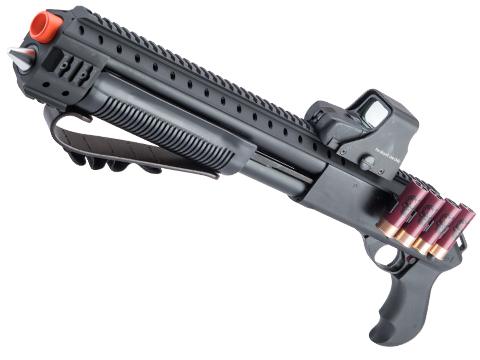 The build quality of this shotgun is also very impressive. The CAM870 boasts an impressive heft to it adding to the realism. Metal parts include the internals, receiver, barrel, magazine tube, trigger guard, trigger, and action. With a 6+1 ammo capacity, you will have more than enough overwhelming firepower to clear any room.