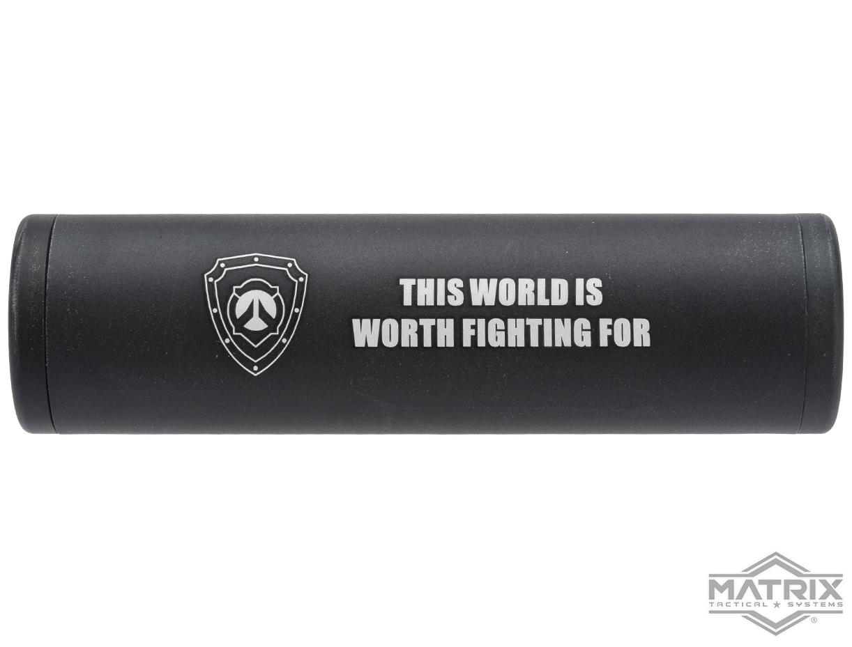 The Matrix Mock Silencer series are quick detach dual-thread mock silencers that is compatible with all 14mm positive and 14mm negative Airsoft devices. Every Matrix H.S. series is constructed of high performance CNC aluminum that is both light weight and strong unlike the low-end / plastic versions offered else where. Every Matrix H.S. series is also finished with stealthy matte finish for optimized slick look. Airsoft Mock silencers are often used to allow extension of a longer inner barrel for enhanced accuracy, but also provides an aggressive new look!