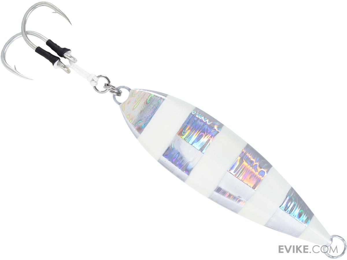 Features Completely new design of the butterfly jigging concept Falls with a wobbling action in a horizontal position Stays in the strike zone longer than traditional butterfly jigs Hydrodynamic flat keel design with center balanced jig that flattens on the fall Includes 2 Owner Dancing Stinger Hooks with Power Pro 250 lb. assist Photoluminescent / Glows in the dark to attract fish in dark waters Shimano Butterfly Flat-Fall Jigs are a totally new concept of Butterfly Jigging technique. Drop the jig down to the bottom, then crank it up 30 feet off the bottom and free spool. Or cast the jig and let it fall while free spooling, wait for the bite, then jerk and repeat. The center balanced jig falls with a wobbling action in a horizontal position, keeping the strike zone longer than the Butterfly jig.