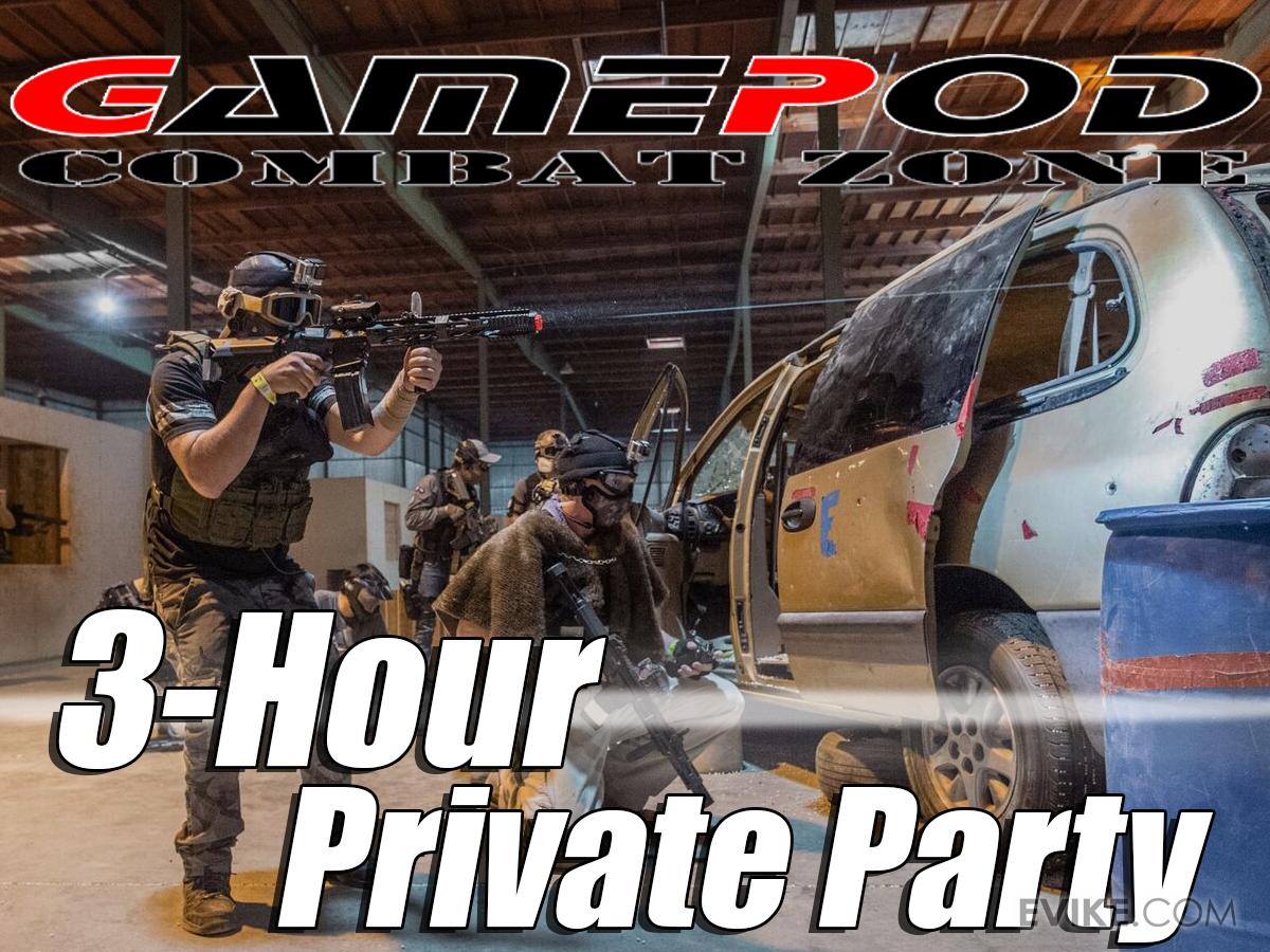 • 3 hours of private access to the entire GamePod Combat Zone facility!