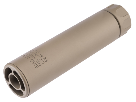 EMG Guardian Mock Suppressors are a great way to add extra aggressiveness and practicality to your Airsoft rifle. The Guardian threads onto any 14mm CCW threaded outer barrel, making it an easy choice for most guns, and effectively extends the length of the rifle concealing longer upgrade inner barrels. EMG Training Division trademarks are machined into the CNC aluminum body of the mock suppressor, alongside a unique serial number, all finished off with a hard anodized finish.