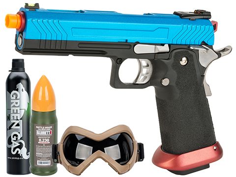 The Evike "Starter's Package" has been carefully curated to include the base essentials needed to get your pistol up and running for your first Airsoft game.Everything chosen for this package consists of highly recommended add-ons from both experienced players and technicians alike; great for first time players or for anyone looking for a backup set of accessories. The package includes: the 6mmProShop "Slipstream" face mask, 600ml green gas can, EMG Barrett Licensed Battle Grade 6mm 2000rd of .23g BBs.