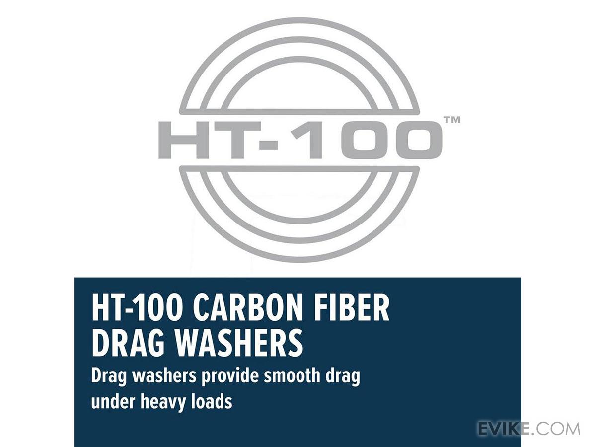 Mono Capacity (yds/lbs): 475/15 315/20 290/25Braid Capacity (yds/lbs): 865/20 650/30 455/50Bearing Count: 4Max Drag (lbs): 33lb | 14.9kgGear Ratio: 4.9:1Retrieve Rate: 28" | 70cmReel Size: 20Braking System: NoneDrag Material: HT-100Anti-Reverse Feature: Instant Anti-ReverseWeight: 17.7 ozReel Handle Position: LeftDrag Type: Star