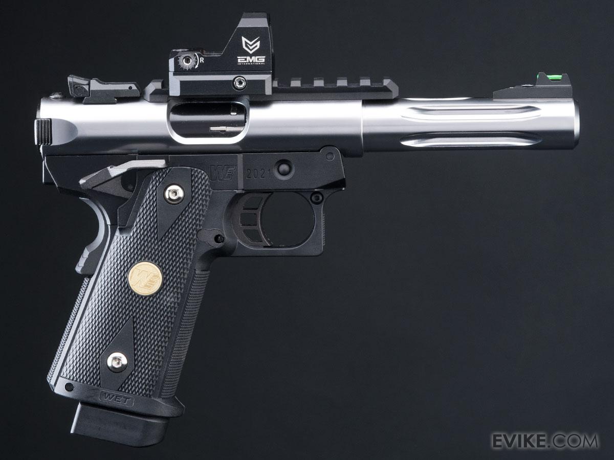 WE-Tech Galaxy Hi-CAPA Gas Blowback Airsoft Pistol (Color: Silver / Checkered Frame / Premium Long Barrel)