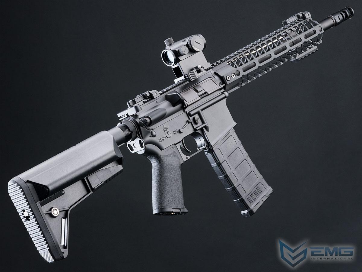 An Exclusive collaboration project between EMG and Spikes Tactical. The Spikes Tactical M4 Airsoft receiver accurately depicts the fine detail and craftsmanship you would find on a real Spikes Tactical firearms receiver. Each rifle is fitted with the redesigned precision CNC machined CRR handguards that are not only aesthetically pleasing but are incredibly versatile and light weight. These fully featured rifles are made not only to look and feel amazing, but also to perform right out of the box.