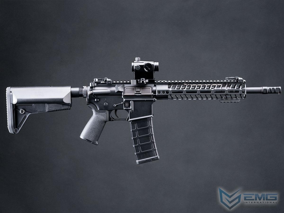 An Exclusive collaboration project between EMG and Spikes Tactical. The Spikes Tactical M4 Airsoft receiver accurately depicts the fine detail and craftsmanship you would find on a real Spikes Tactical firearms receiver. Each rifle is fitted with the redesigned precision CNC machined CRR handguards that are not only aesthetically pleasing but are incredibly versatile and light weight. These fully featured rifles are made not only to look and feel amazing, but also to perform right out of the box.