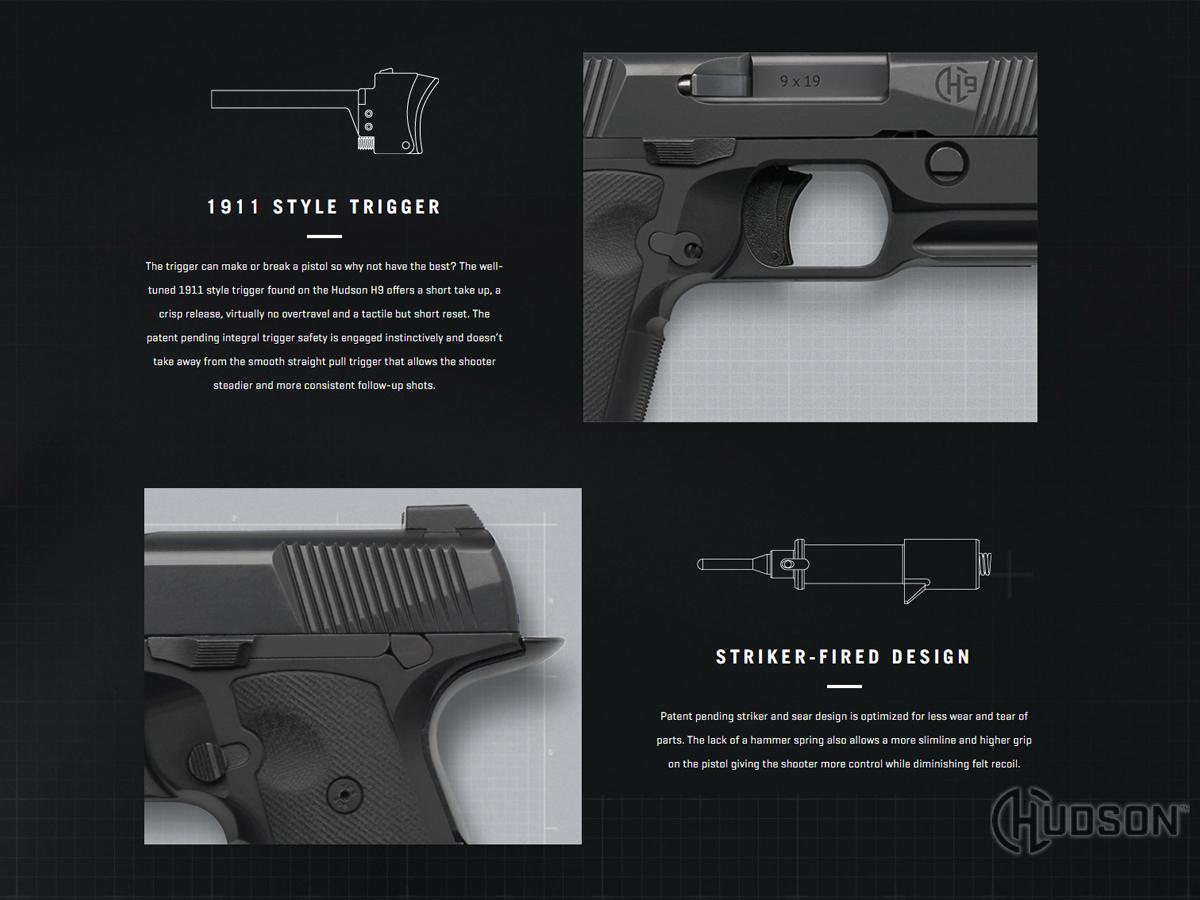 Mankinds collective experience as soldiers, as frontiersmen and as firearms enthusiasts have contributed to where we stand today. Taking cues from its legendary predecessors the Hudson H9 does not stray from its roots. From its steel frame, to its straight-pull trigger, to its striker-fired design the H9 will feel instantly familiar to firearms enthusiasts.