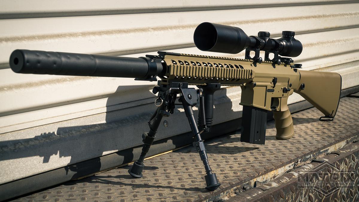 The Matrix series of SR25 Airsoft AEGs brings a variety of offerings to the table, providing a platform for every level of player. Available in both black and tan with metal or polymer receivers, the Matrix SR25 series of AEGs comes in standard fixed stock configuration or the "K" configuration with an adjustable crane style stock.