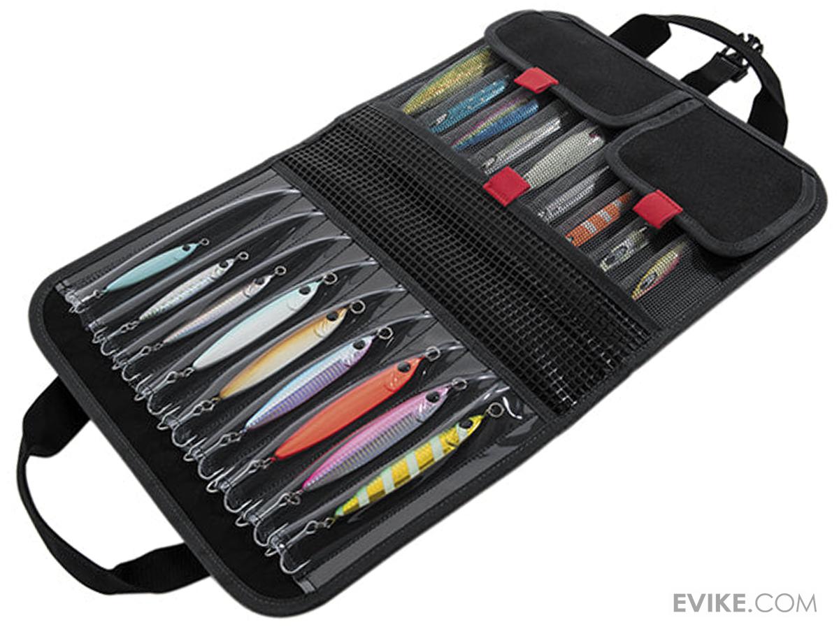 Features Durable water resistant vinyl construction Mesh pockets keep your lures dry and visible 5 Velcro separated compartments Buckle latch top Premium vinyl construction to store all your jigs with easy access. 5 Velcro separated compartments and a buckle latch top that can be opened to allow anglers to organize tackle to fit their specific needs.