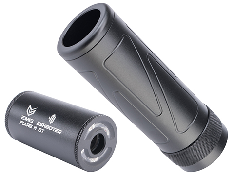 Our new Alloy Cases for Eshooter Flare M, M BT, and Mono tracer units. Crafted from high-quality aluminum alloy, these cases resemble sleek gun suppressors, complete with black color and detailed engraving lines.