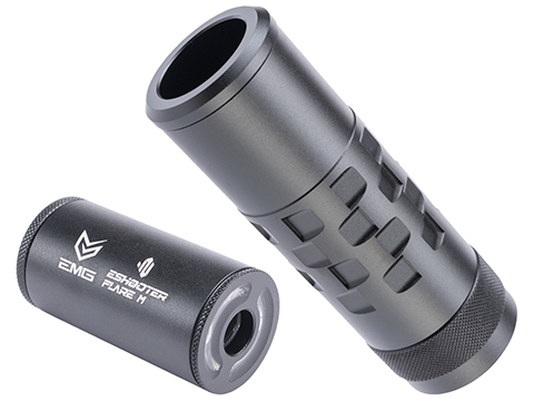 Our new Alloy Cases for Eshooter Flare M, M BT, and Mono tracer units. Crafted from high-quality aluminum alloy, these cases resemble sleek gun suppressors, complete with black color and detailed engraving lines.