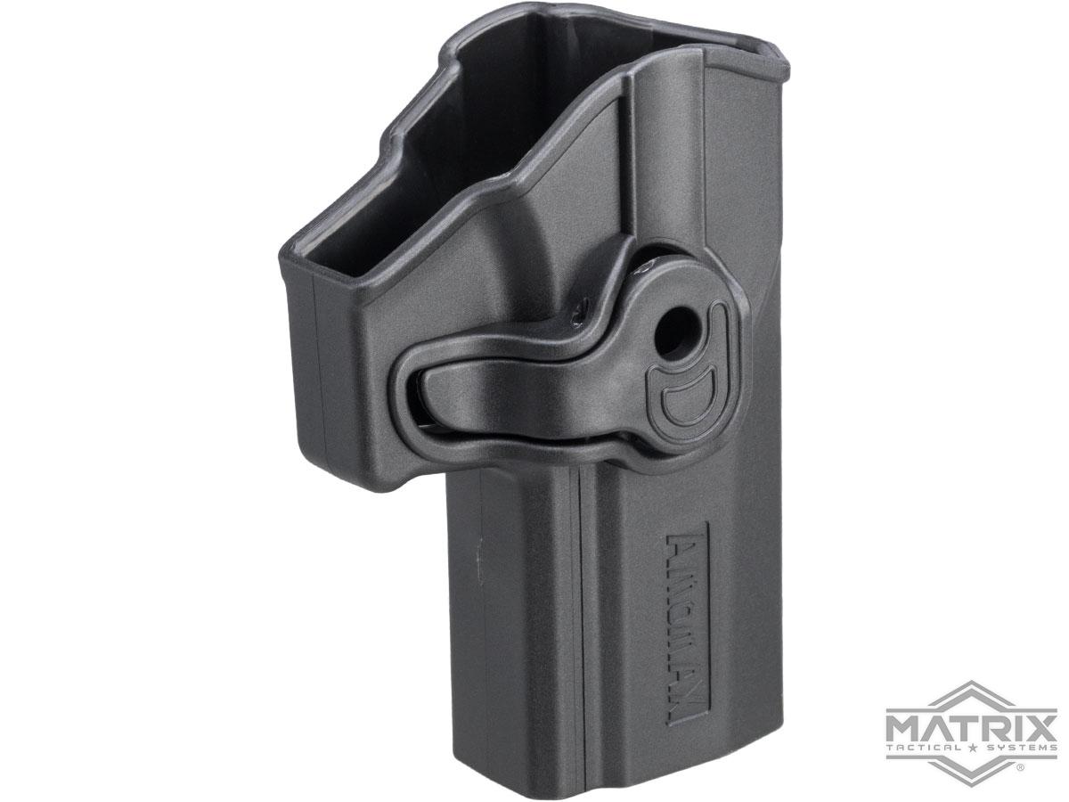 This holster is manufactured in collaboration of Matrix Tactical Systems and a manufacturing facility that produces real steel fire-arm holsters. The Matrix Group brings you an injection molded hard shell Glock style holster with trigger lock specifically designed for airsoft pistols using the same manufacturing process as real steel holsters. It is fully compatible with SIG Sauer ProForce P320 airsoft sidearms. It may be compatible with other brands of P320 airsoft pistols as well.