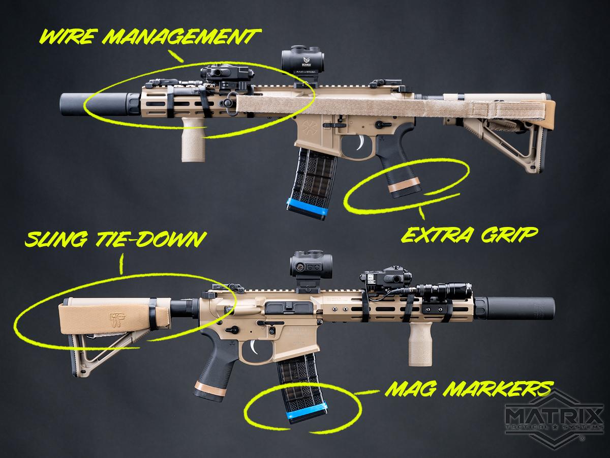 You're sneaking up on that pesky sniper that's been holding back your team for 15 minutes. Your helmet cam is on, ready to record your epic kill so that you can become famous on the internet. As you raise your trusty M4, it happens. The pesky wires for your flashlight and laser snag on a barricade! As you fumble to free your gun from the obstruction, the sniper turns and ends your chances at being the hero. If only you had invested in ranger bands to assist in cable management, you would be reeling in views and likes by now.