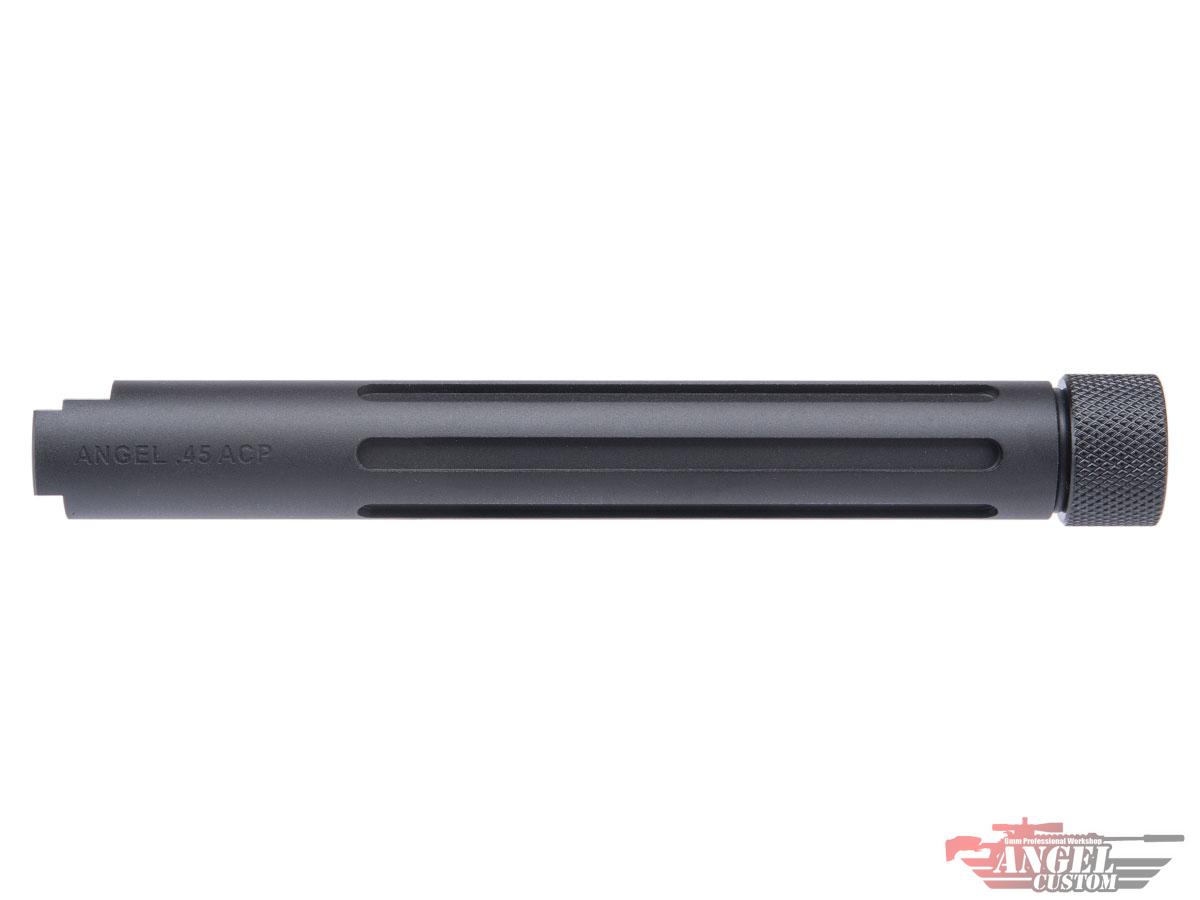 The Angel Custom CNC Machined Aluminum outer barrels features an inner o-ring for inner barrel stability to reduce inner barrel wobbling, enhance grouping, and enhance accuracy. Externally the Outer Barrel features a 14mm CCW threaded barrel with an included knurled thread protector, weather resistant anodized finish, and sleek weight saving fluting.