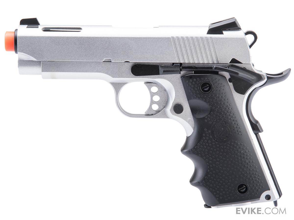 "I got this pistol in black for just under $100 on sale. Came with a simple hard case and also an extra air nozzle in a separate small bag. full metal. frame, slide, outer barrel. plastic grip plates is the only plastic externally. Big plus is the orange tip just un-threaded by hand easily.if they used glue it was hair spray. the threads are not 11mm they are 12mm-. The barrel thread adapter from Novrtitch for his 1911 would work just fine. I believe its 12mm negative. The mag area looks like it accepts CO2 mags as well. It has the circle opening in the bottom so it should work with both. Safety levers stand a bit proud of the sides. I haven't tested it at range but its just a simple pistol. standard inner barrel and hop set up.