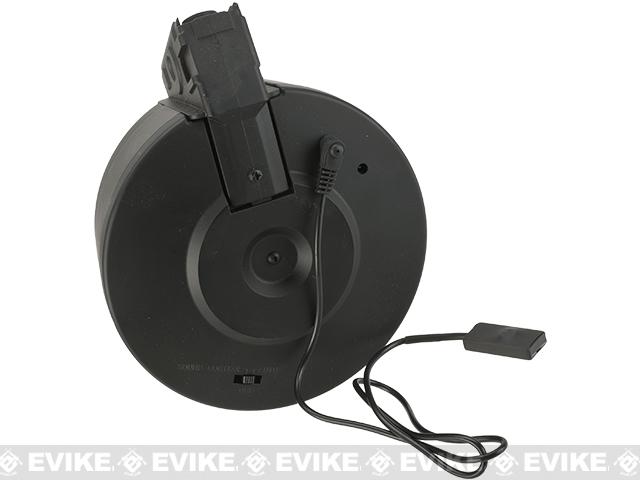 "I wanted to love this drum mag. Unfortunately, right out of the box it did not work properly. The sound operated winding function, when activated, continuously wound and would not stop under any circumstances. Then after the second outing, the auto wind feature also stopped functioning. Now the only way it works is in manual switch mode with the included cable. Used it a total of 3 times with no drops and now 2 of the 3 functions don't work. Should have returned it, but the salesperson I bought it from told me I would have had to return it within the first 7 days or so, and I did not get to try the magazine out for a few weeks after I purchased it. I love EVIKE and have purchased a lot more items since then, but I would shy away from this magazine, especially as expensive as it is.
