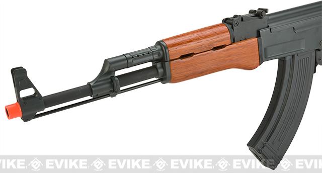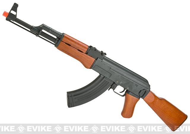 "I have purchased from Evike since 2015. I dropped out of airsoft in 2018 but decided to pick the sport back up in 2022. Evike continues to offer quality service and products and is still my preferred choice for airsoft items. This Ak is a wicked machine, easily hitting targets 60-70 yards away with .25 bb’s and a 9.6v 1600mah battery. I ordered extra magazines which brought my payment total up enough to get free 3 day shipping which arrived on time. I was worried the real wood would look too orange but it is a very light beautiful stain and finish. Fit and finish on the wood and metal is excellent. The battery compartment is a little tight but works nonetheless with a small type battery. Overall would definitely recommend this gun for weekend players like myself who prefer Ak47’s.