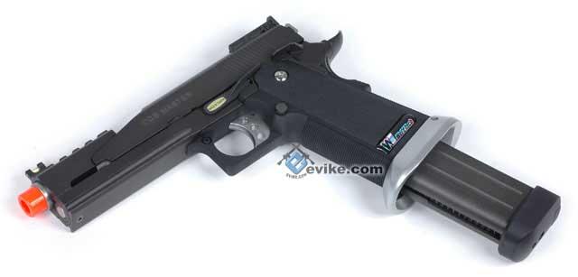 Need more firepower? Of course you do! The CQB Master extended Hi-CAPA magazine by WE-Tech will not only provide you an aggressive new look, but twice the fire power in both gas capacity and bb capacity!