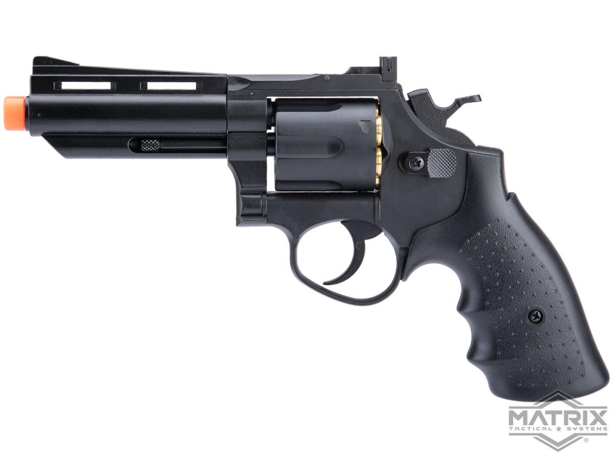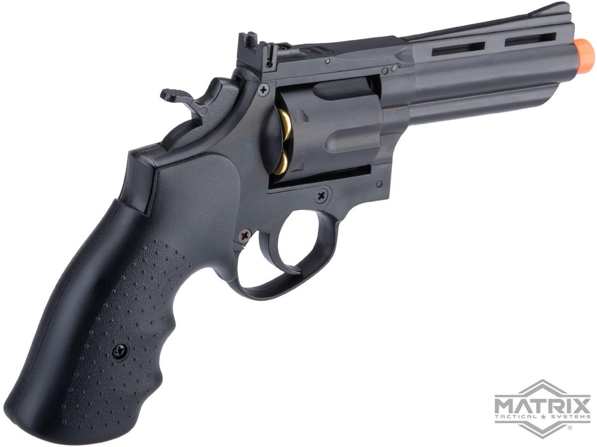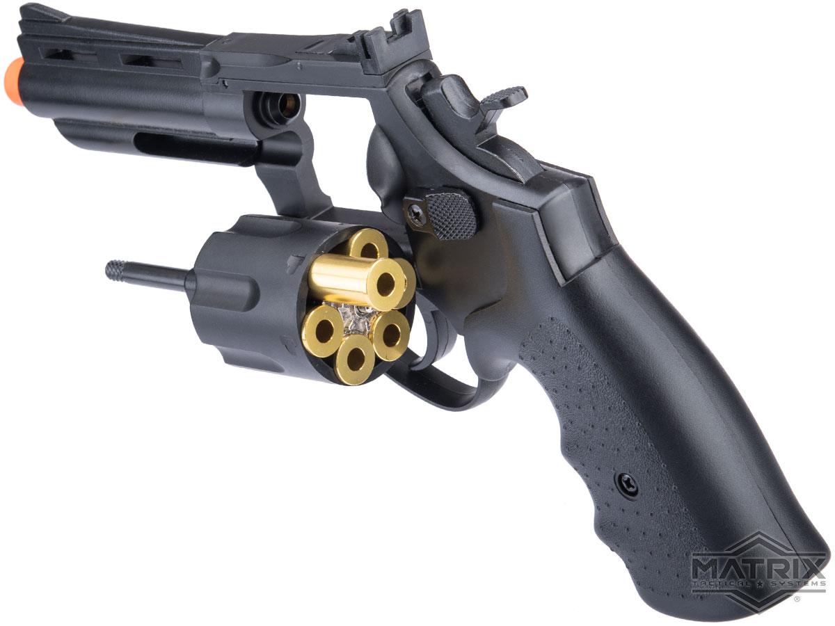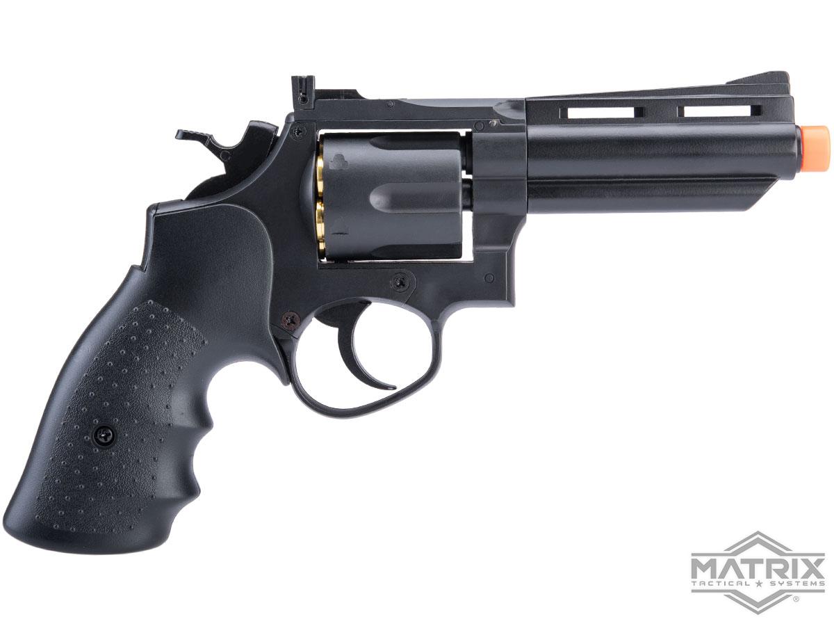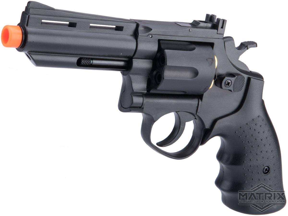 The Matrix Molon Labe 357 Green Gas Revolver is a green gas airsoft revolver that is made of heavy duty polymer construction. This Matrix airsoft gun is green gas powered and functions similarly to a real revolver. The Matrix 6mm revolver also comes with six brass cartridges and reloads in a snap. The cylinder holds six cartridges, and each cartridge holds one 6mm airsoft BB. This is a great starter revolver at a great price! We recommend our Matrix Green Gas for use with this Matrix airsoft pistol.