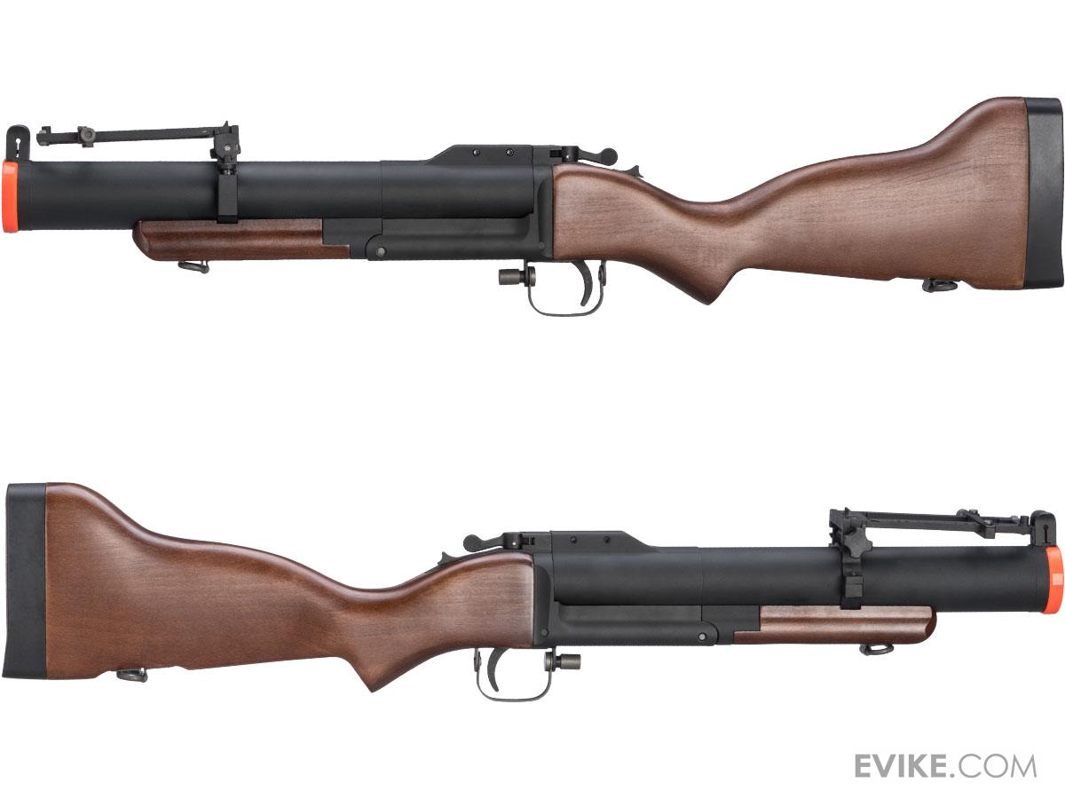 We are proud to to announce the release of this very nice M79 grenade launcher also know as "The Thumper" by King Arms. It is a single-shot, shoulder-fired, break open grenade launcher which fires an Airsoft 40mm gas grenade first appeared during the Vietnam War. The M79 can fire a wide variety of 40 mm rounds, here at Evike.com, we carry a huge selection of compatible grenade shells for your liking. Increase your fire-power and look better today with the King Arms M79 Launcher
