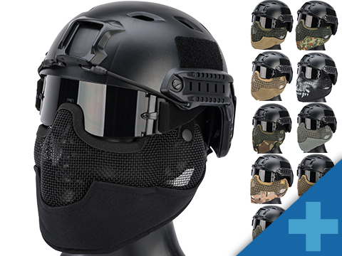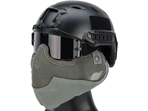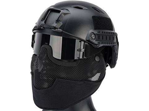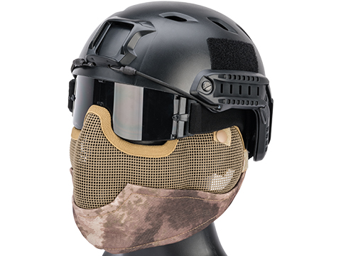 The Matrix Iron Face Striker Gen2 Mask offers superior breathability, protection, and ease of use for Airsoft Gaming. The low profile design allows full use of scopes and iron sights while the Carbon Steel mesh provides optimum strength with maximum protection. The steel mesh performs extremely well holding up to very high BB velocity while providing great air flow reducing the chance of eye protection fogging up on you while in the middle of a game. Adjustable elastic head bands provide a secure fit allowing the mask to be custom tailored to user preference. Pair the Striker Gen2 mask with a good set of Full Seal Goggles and you have yourself one of the best possible choices for Airsoft face protection.