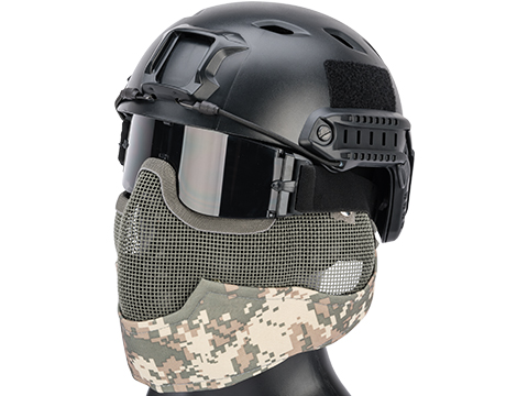 "You will not be disappointed or regret purchasing this lower face mask unless you have specific preferences you demand. I am satisfied with this mask since it is comfortable with full ear protection where it does not scrunch my ears, face or head. The metal mesh covers the lower face portion protecting it from harmful BB's. I own the woodland digital color to match with my woodland digital color gear such as the vest, hat, gloves, uniform. This my USMC woodland digital camouflage style loaded gear.