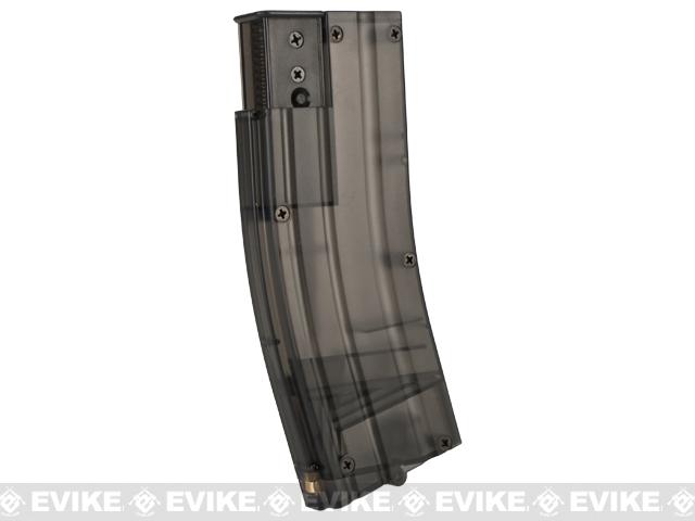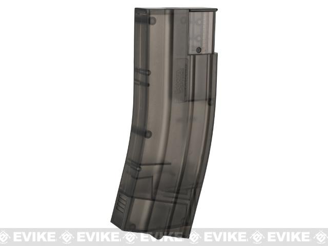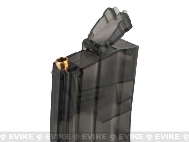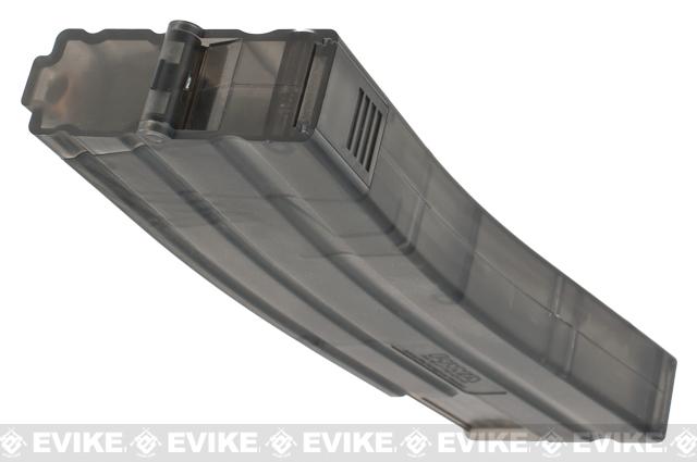 The KWA M4 magazine style speed loader holds an impressive 460 rounds and conveniently fits into your standard M4 magazine pouch. With this speed loader, you can easily bring 3-4 mid caps worth of ammo onto the field with you. Constructed out of high impact polymer, this speed loader was built to last. The new updated version now comes with a reinforced brass loading nozzle and an adapter for gas blowback magazines.