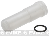 "Excellent cylinder head for air seal, AoE and nozzle fitment. If you plan on a build that uses longer nozzles (G3, G36, SR25, Masada, Scar, etc.) the nozzle stem provides additional support with its longer length, making it a viable option for DMR builds, helping eliminate midcap syndrome elements meanwhile gaining better air seal. When installing into a shell that is not V3, use a grinding tool to remove the upper shelf for fitment in your shell.