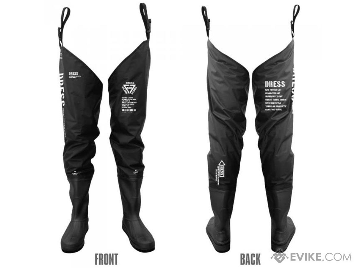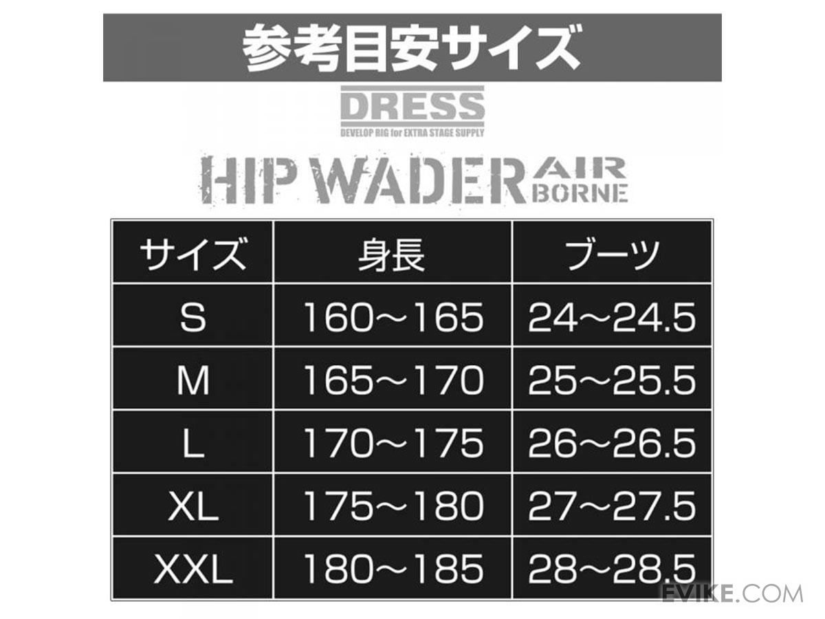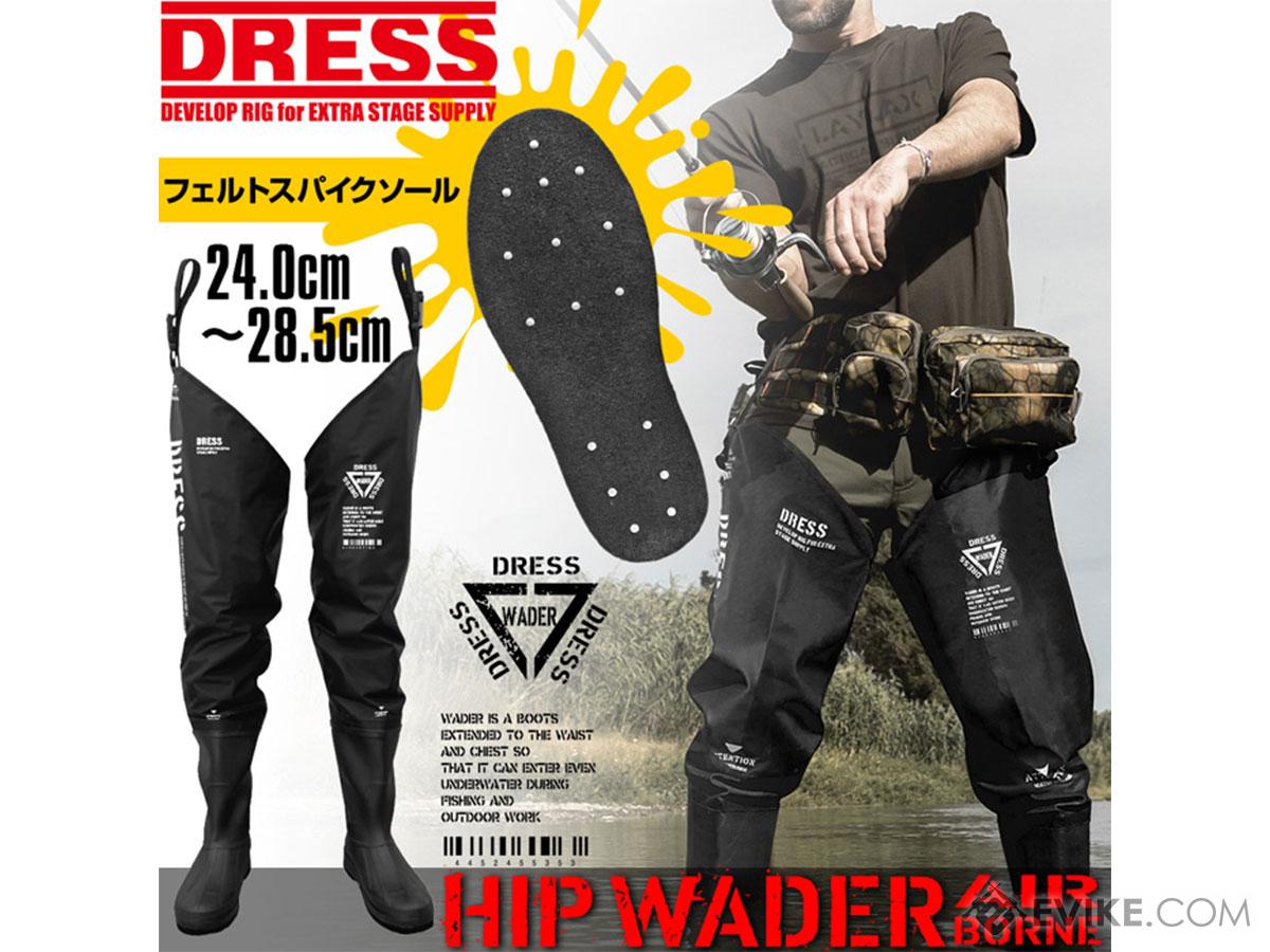 Features Lightweight, easy to move in nylon fabric Side belt prevents the waders from slipping down your leg as you move Felt spikes makes traversing to your fishing spot easier by improving traction Folds up for easy transport The DRESS "Hip Wader" makes fishing in the shallows a piece of cake. Functioning like a pair of tall rubber boots, these waders are easy to put on and take off as well as allow much more freedom of movement.