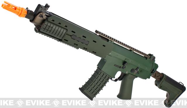 Based on the AK5 used by Swedish Military and Police Forces the G&G GK5-C GL is a solidly built, accurate replica of its real steel counterpart. The GK5-C has a great, stout feeling to it and exhibits a high standard of detail. Externally the GK5-C features a Retractable Folding Stock, Flip-up Front Sight, a Full Length Optics Rail and a Front Rail System. The bolt locks back for easy hopup adjustment and the rear sight is adjustable. The GK5-C is finished in a true Swedish Military Green giving it a very authentic look.