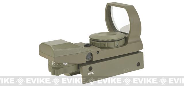 Designed to be lightweight and compact, Panorama style reflex sights are ideal for use on smaller frame guns like SBRs submachine guns and even shotguns. The panorama style lens provides the clearest field of view without the obstructions commonly found when using other red dot type optics, ensuring that you always have a clear view of the battlefield. The Evike.com series of Panorama Reflex Sights bring high quality construction and features usually found on more expensive optics, to players everywhere. Each Evike.com Reflex Sight offers four variable reticles in different collections, allowing the player to easily switch reticles depending on their needs. The Evike.com Reflex sight comes in black or tan colorways, ensuring you have an optic for that matches your camouflage and concealment needs.