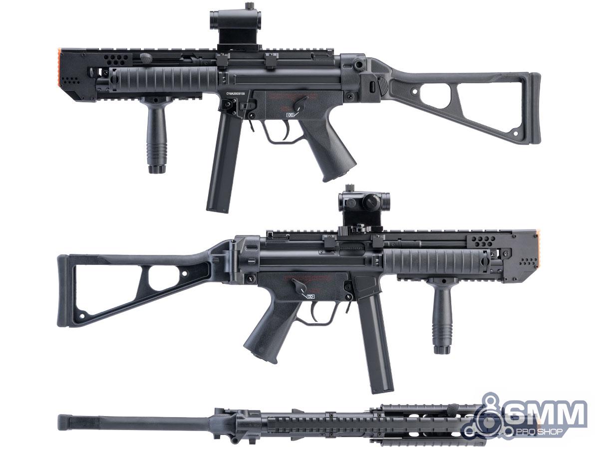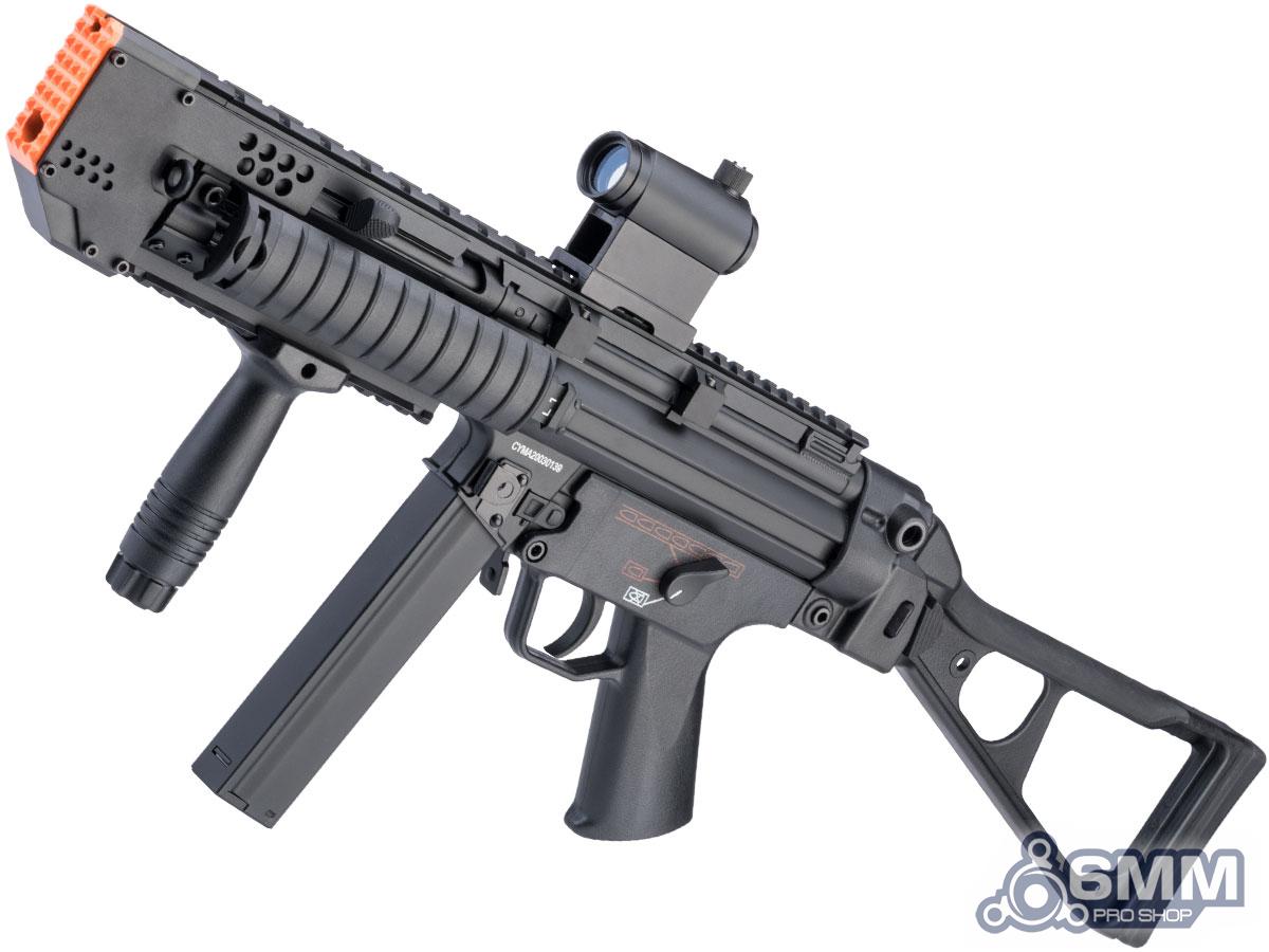 Based off the popular CYMA CM041, the 6mmProShop Custom Swordfish A4 features the same quality AEG with reinforced full metal gearbox and solid performance. The gun comes with the aggressive Swordfish rail and muzzle kit pre-installed; giving the gun a futuristic, unique, and intimidating look. The compact size makes this a perfect primary for CQB loadouts or as an excellent secondary / backup to sniper or heavy weapon specialist loadouts. The Marui spec version 2 gearbox ensures you will not be out-gunned in performance and is fully compatible with the wide selection of upgrade parts available here at Evike.com.