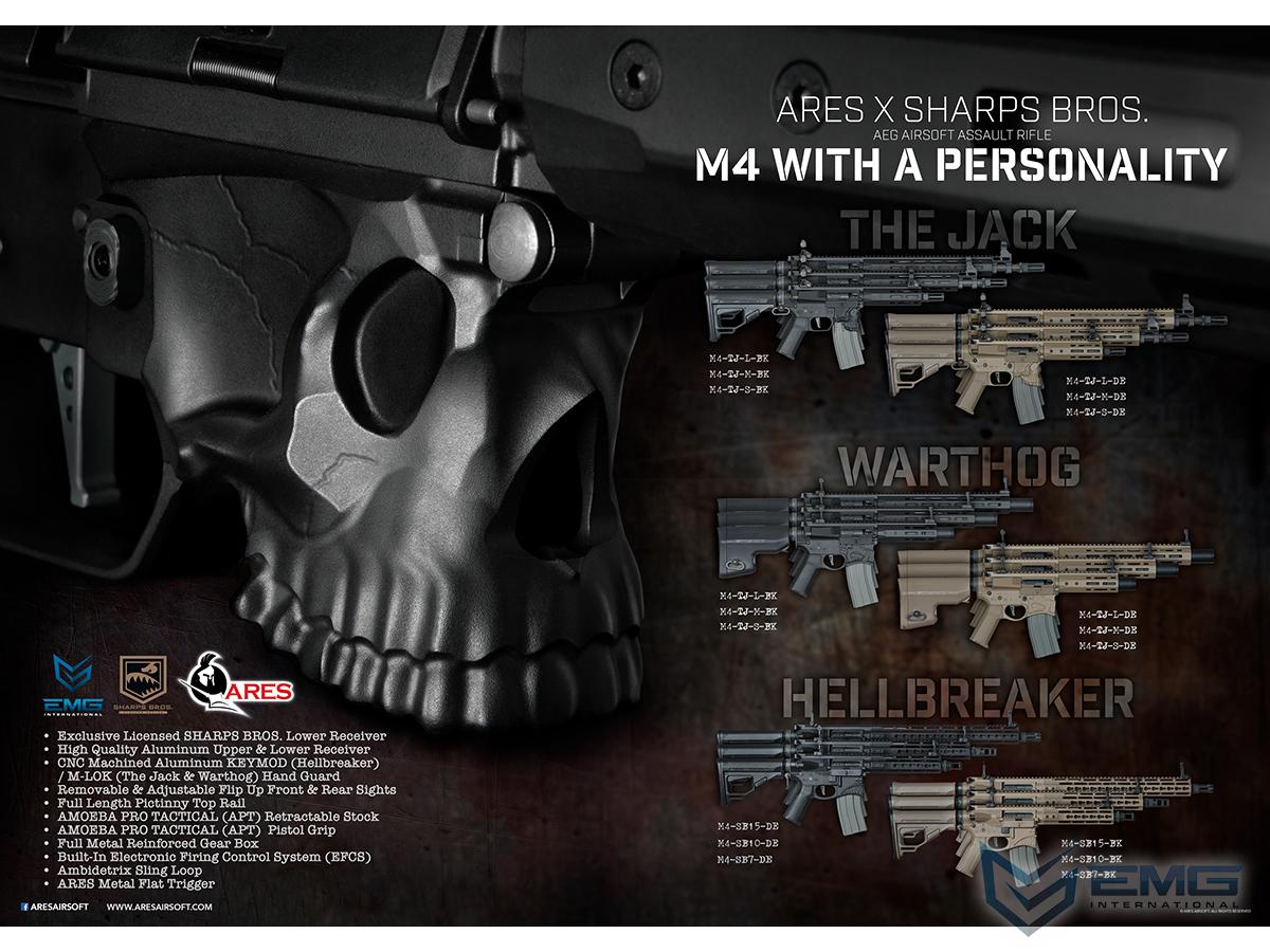 Performance and Internals: Internally, the Hellbreaker is the most advanced Airsoft rifle on the market today featuring the award winning QD programmable gearbox as seen on the popular Amoeba series AEG by ARES, high performance motor, adjustable hopup and superb accuracy. Externally, the Hellbreaker features a full metal Sharps Bros licensed metal receiver with enlarged magazine well for high speed operations, Octarms system for quick handguard sway to keep your load outs for various operations zeroed in, keymod advanced handguard, optic ready upper receiver, flip-up front and rear sight, ergonomic retractable stock, advanced motor grip, sling adapters, and much more!