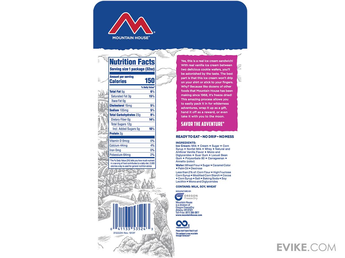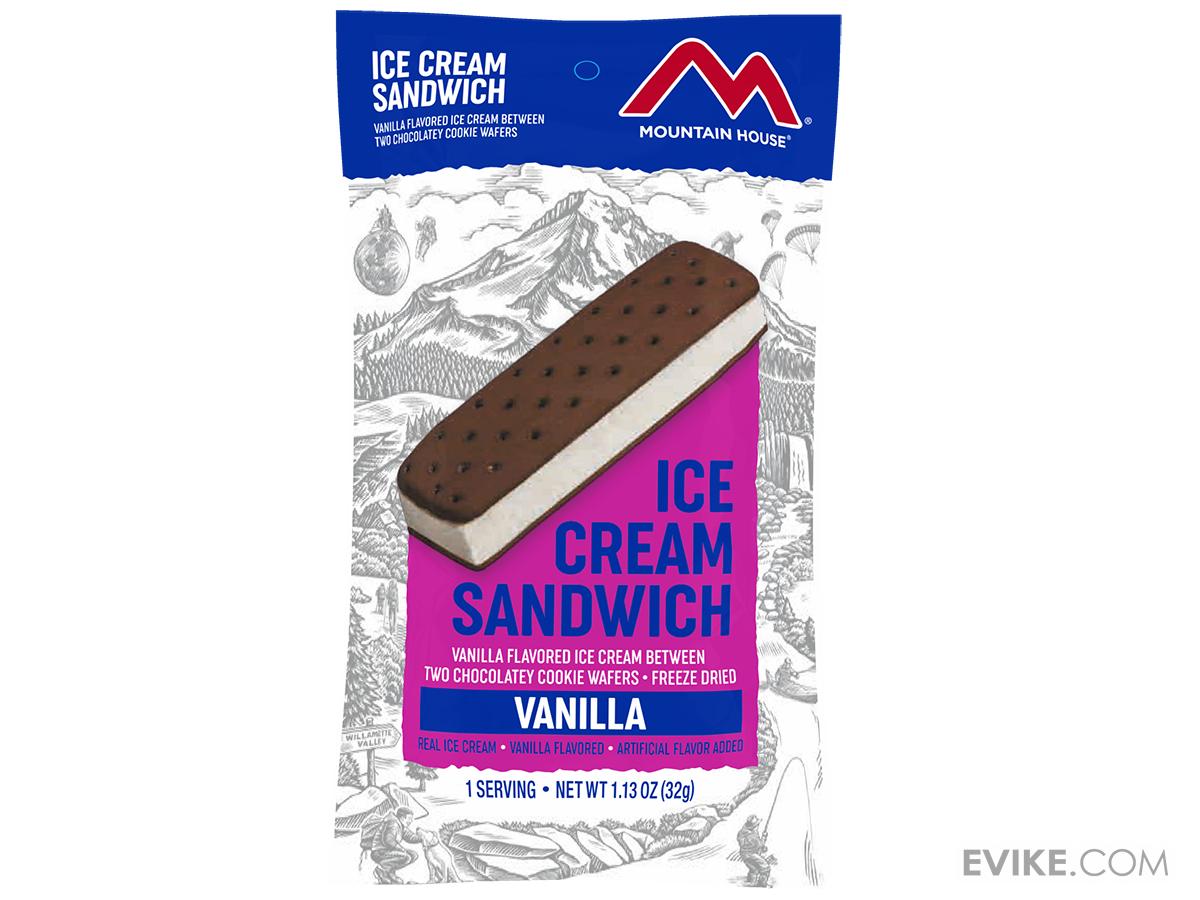 A layer of delicious real vanilla ice cream sandwiched between two chocolate cookie wafers. Eat straight out the pouch, no water required!
