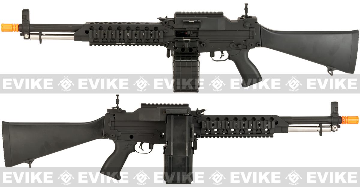 I will say the only somewhat negative on this platform is the box magazine. For a support weapon, it's small (1200 rounds) and the quality is not the greatest. I've had to fix two of the manual feed buttons (the magazine will feed automatically without issue) on the top of the magazine, and on two of them I've had the latch for the BB feed door break off and drop into the magazine. This will inevitably jam the feeding mechanism at some point. Also, if you can seal up the metal "spring type" feed tube. I've used large diameter shrink wrap and it's worked fine. Basically the feed mechanism is a slinky barely larger than the BB that feeds the BBs up and then drops them down, so you're using gravity to feed the gun. It works, and G&P does a good job with the protective cover on the magazine frame itself, but it's something that I've experienced in the past.