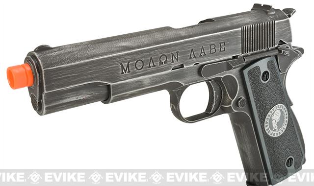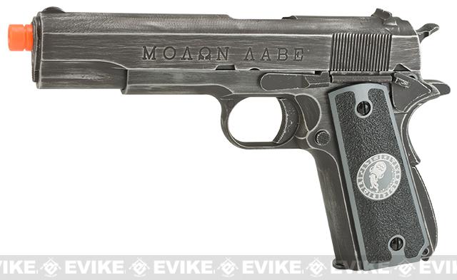 Evike.com "Nostradamus" Custom Armorer Works "Molon Labe" Gas Blowback Airsoft Pistol with Angel Custom Tac-Glove Grips