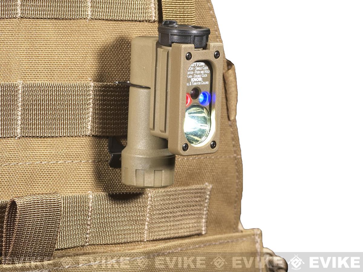 • Durable clip attaches to helmet, headstrap or MOLLE vest.