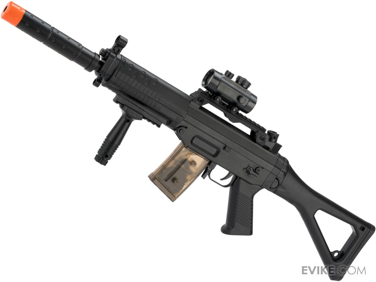 "Love this gun for the price. It is a great option if you are looking to spend a little less to get into airsofting. It is lower power but the adjustable hop up works very well allowing you to use .2g bbs and still be accurate and have some range which can't be said about most of the other guns of this price point. Using .20 bbs you have a range of about 50ft before the bbs drop. First thing out of the box is to throw away the flashlight and the vertical grip as the flashlight barely works and you couldn't even see 10ft in front of you in the dark with it and the vertical grip is so cheap and will break on you. The safe, semi, and full auto features all work as well as the adjustable hop up and the folding stock. The suppressor is a cool feature although it is very cheap and serves no purpose other than looks and the red dot that came with mine actually worked although not as good as a real red dot, it will work as the crosshair was plenty bright to be used during the day and the lenses are plastic so they won't be shot out like most glass optics in airsoft. The battery will usually last me a full day session as I almost never use full auto but when using full auto it will last you about half that. Mine also came with the high cap mag instead of the 40 round mid cap so that was cool and I never had any feeding issues or winding issues from the mag. Overall great gun for the price, I wish I still had mine but I gave it to one of my buddies so that he can get into airsoft as well.