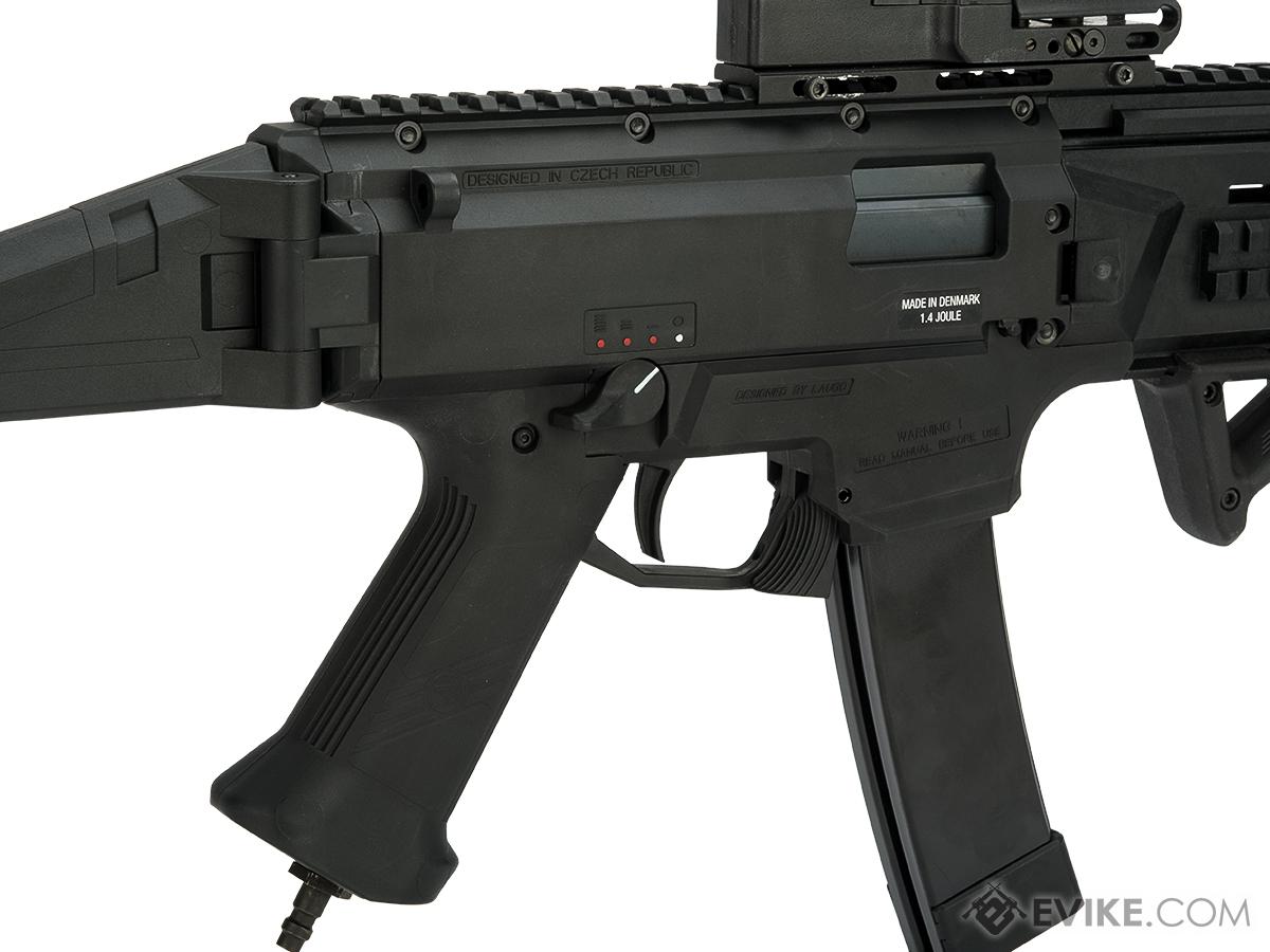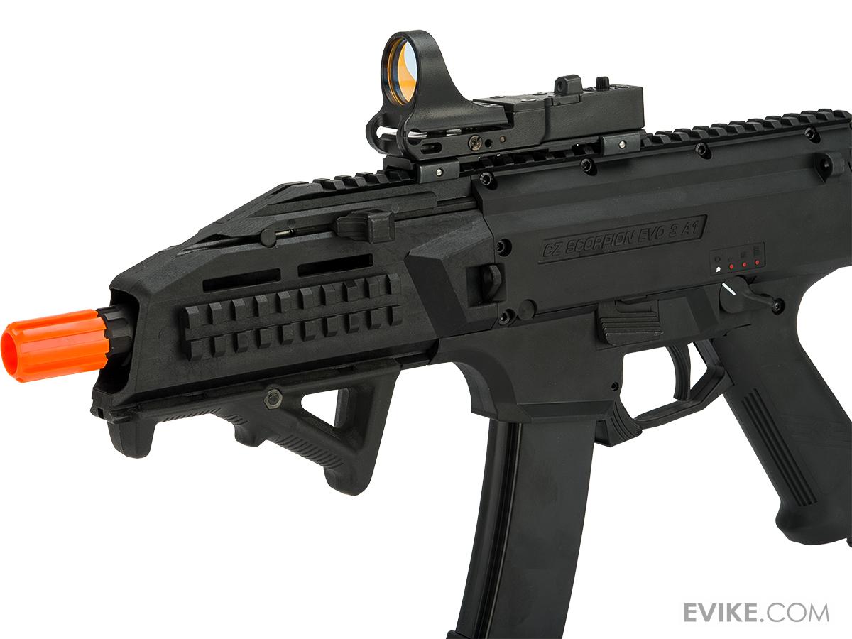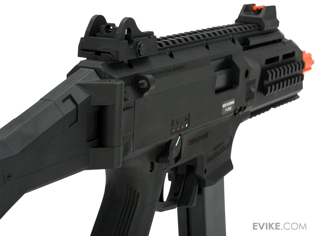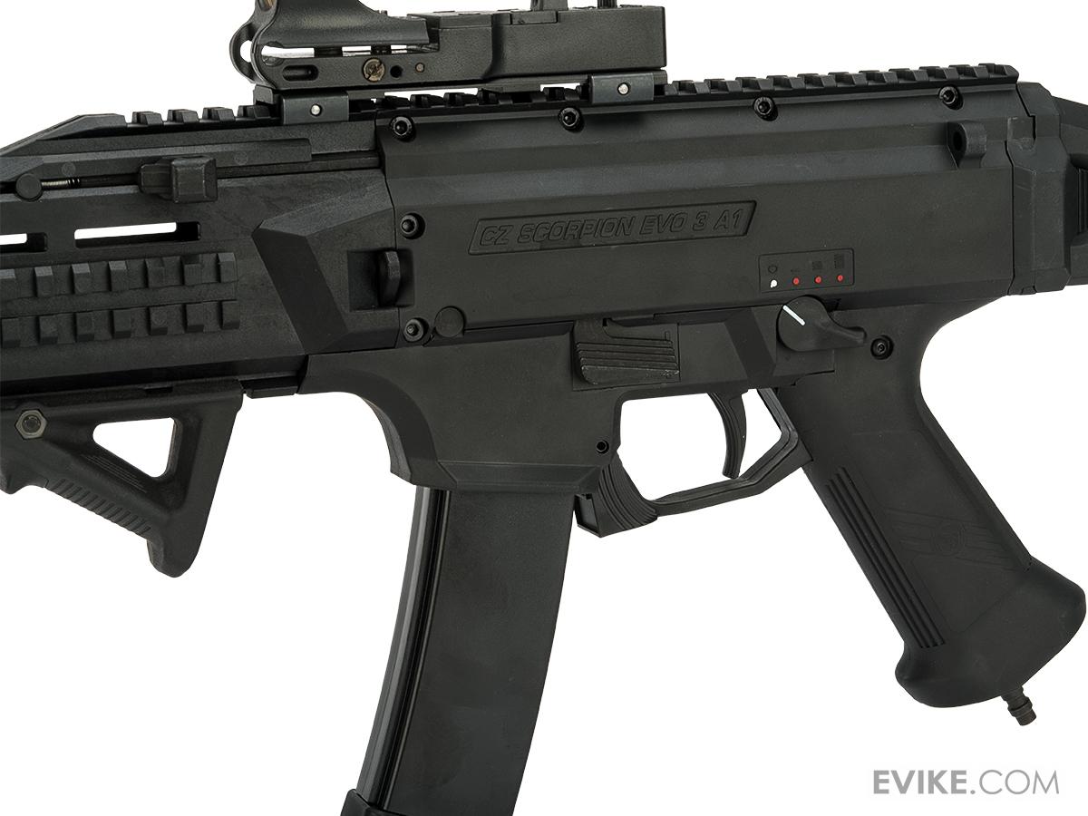 The CZ Scorpion EVO 3 A1 has been envisioned, developed and built by ASG, to bring the Airsoft player as close to the experience of handling the real EVO 3 as possible. Like a real gun, the EVO 3 will stop firing when its magazine runs empty, and require activation of the bolt catch after a reloaded magazine has been inserted. Where the standard in Airsoft is to replicate the exterior in appearance only, the EVO 3 is built to be as tough as the real thing. The internals have been purpose built to deliver advanced functions by using custom electronics, while having the strength necessary to handle both powerful springs and high-speed solutions.