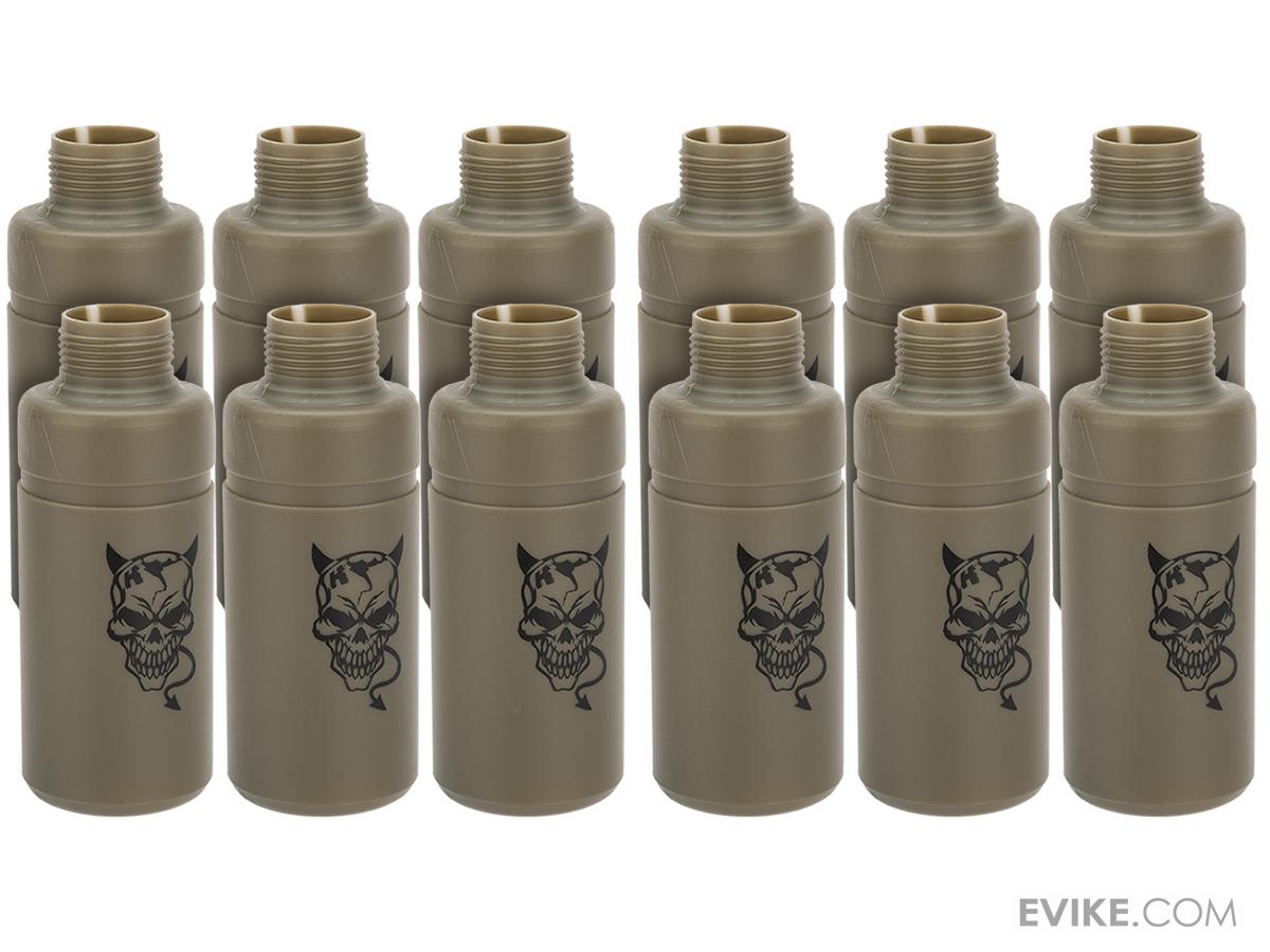 The new Thunder-Devil grenade from APS is the most recent evolution of the Thunder-B system of CO2 powered Airsoft / Simulation grenades. Traditional Thunder-B grenades have been a staple in Airsoft for many years and while they only emit a loud report upon detonation, they remain a player favorite thanks to their ease of use, reliability and economical cost. Now, APS has taken the Thunder-B system and modified it to provide an even greater tactical advantage on the field. The Thunder-Devil line of grenades takes all of the well liked features of the original Thunder-Bs and adds one key feature that people have been asking for for years. The Thunder-Devil line of grenades not only explodes with the loud report of the regular grenades, but now will spread 150 BBs over a wide swath of terrain. Perfect for close quarters or indoor combat, the Thunder-Devil grenades will give you the advantage against the opposition in most CQB scenarios. With no delicate detonation systems and easy and affordable to replace single use shells, the APS Thunder-Devil grenade system will help bring your CQB game to the next level.