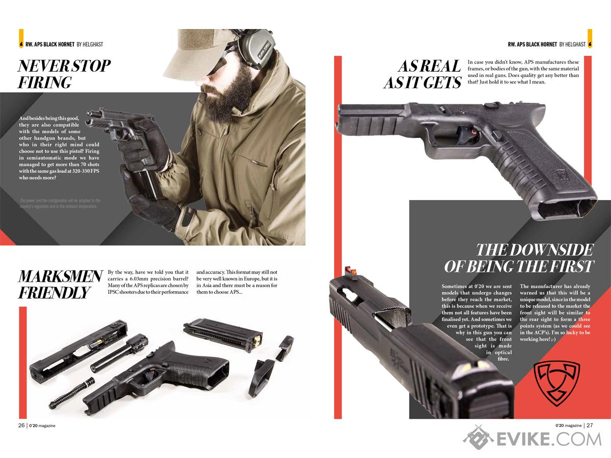 • New APS CO2 magazine design for improved stability and consistency; uses nylon reinforced polycarbonate Tokyo Marui spec G Series nozzle w/ steel hammer and nozzle frames; compatible with Tokyo Marui G Series magazines