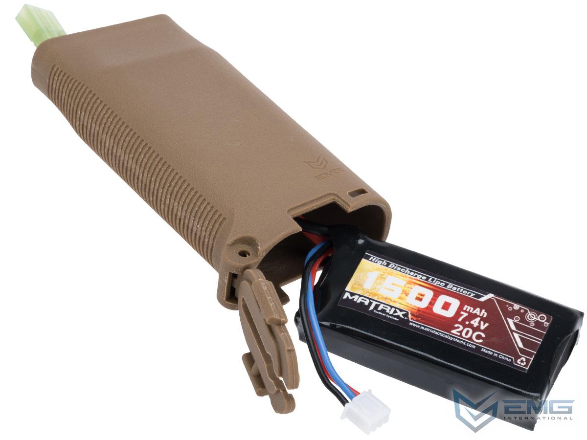"Good foregrip. Texture is nice and doesn't slip with or without gloves. Has a small storage for a small battery. I mean small.