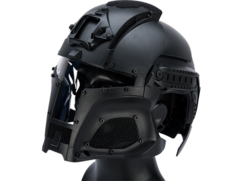 "I would totally give it 5 stars if the latch work 100% of the time. I it works if closed and never touched again. If you open your mask is open already and try to closed it the latch won't catch for some reason. I had to pull the mask slowly while closing to make sure it catch. I mean it's easier to take off the helmet and close it that way and put back on in my opinion. Also I did not realize it is so big I have to get used to it while shooting my P90 lol. Not going to lie this helmet pair with the P90 looks sick as hell... totally recommend to buy and totally worth it.